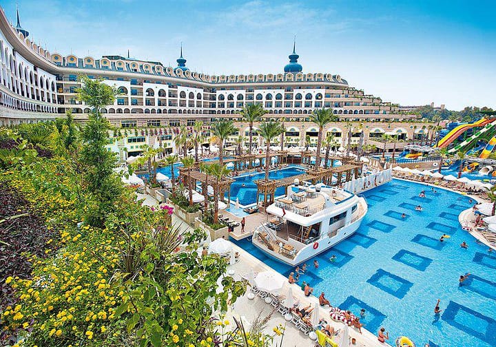 Vakantie vieren in Side wordt nog leuker tijdens een verblijf in het 5-sterren Crystal Sunset Luxury Resort en Spa! Roetsjen van de waterglijbanen in het waterpark, een heerlijke duik nemen in de meerdere zwembaden en ontspannen in de spa. Het hele gezin kan meedoen aan het afwisselende animatieprogramma en in de avond genieten van shows. Dankzij de all inclusive formule kan je elke dag weer iets anders eten en drinken. En ook overnacht je nog eens in een ruime kamer. Klinkt goed toch? Regel snel jouw vakantie en beleef de time of your life aan de Turkse Riviera.