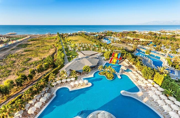 In het Turkse Lara ligt een waar tophotel voor een All Inclusive vakantie! We hebben het over Melas Lara, een luxe 5-sterren hotel dat ook nog eens direct aan een privéstrand ligt. Je verblijft hier op basis van Ultra All Inclusive en dat betekent dat er super veel inclusief is. Onbeperkt toegang tot de buffetten, tot lekkere drankjes bij de bars, veel sportmogelijkheden en entree tot het wellnesscentrum. Spring in het grote buitenzwembad en glij zo vaak als je wilt van de waterglijbanen. Het is allemaal inbegrepen bij het All-In concept. Een vakantie was nog nooit zo zorgeloos als bij Melas Lara!