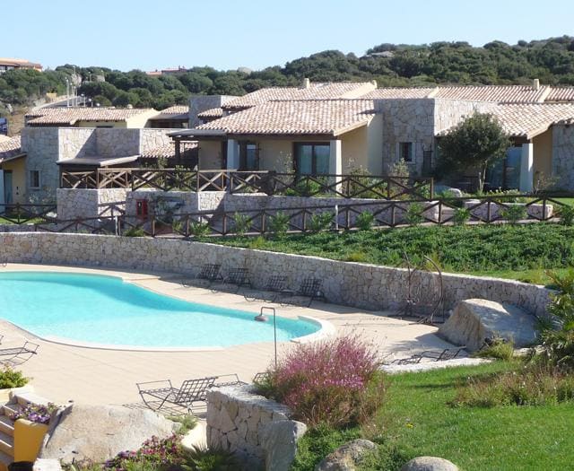 Ik zag nog net de sierlijke letters staan op de steen voor de ingang, Residence Punta Falcone. Bijna reed ik er voorbij. De muren van het resort zijn gesausd met lichtbruine en groene schutkleuren en matchen een-op-een met de natuur eromheen, waardoor het onopvallend tussen de bomen ligt. Terwijl ik het terrein op draai, vraag ik me af hoe je dit ooit kunt missen. Het terrein is gigantisch: er staan negen gebouwen met in elk vijf tot zes appartementen. In het midden, op een verlaging, ligt een prachtig zwembad. Ik kijk er verlekkerd naar. ‘Een duik in het water kan ik na mijn tocht wel gebruiken.’