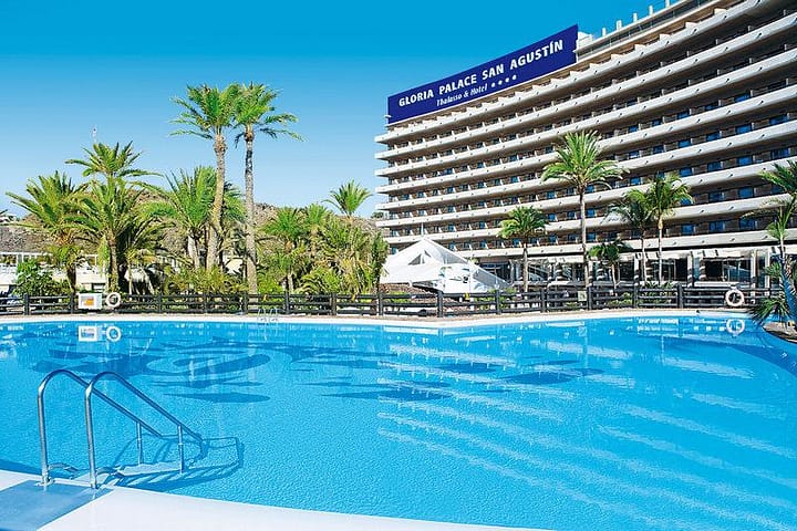 Ontdek een oase van rust en luxe in het prachtige San Agustin in Gloria Palace San Agustin Thalasso, een schitterend 4-sterren hotel aan een rustige hellende weg, op slechts een steenworp afstand van het betoverende strand van San Agustin. Betreed een wereld van rust en gezelligheid met uitstekende faciliteiten. Geniet van verfrissing in een van de drie buitenbaden of het binnenbad, ontspan op het zonneterras en laat je vervolgens verwennen met een scala aan wellnessfaciliteiten om de dag mee af te sluiten. Culinaire hoogstandjes wachten daarbij op je in de diverse eetgelegenheden. Door de dag heen zorgt het entertainmentteam voor plezier voor jong en oud. Met logies & ontbijt, halfpension of all inclusive arrangementen, is dit hotel de perfecte keuze voor een onvergetelijke vakantie op Gran Canaria.