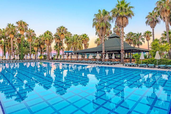 Het populaire 5-sterrenresort Meryan in Alanya is een aanrader voor jong en oud! Het hotel heeft voor ieder wat wils: voor de kinderen is er een animatie en u kunt terecht bij het wellnesscentrum voor ontspanning. Ook zijn er twee zwembaden met verschillende waterglijbanen. De all inclusive formule is erg uitgebreid, van uitslapersontbijt, ijsjes tot midnightsnacks en lokale (non-) alcoholische dranken.