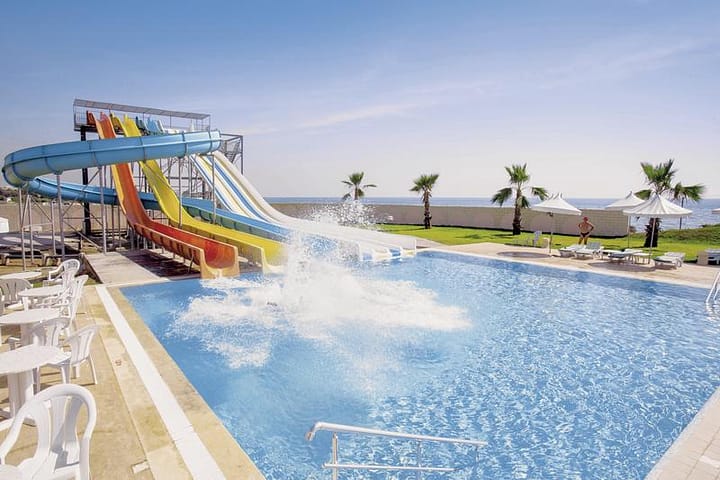 Ontdek tijdens je volgende vakantie eens het 4-sterrenhotel Khayam Gardens. Deze kindvriendelijke accommodatie is gelegen aan het strand van Nabeul op het mooie Tunesie. Perfect voor een heerlijke strandvakantie met het hele gezin, vrienden of partner. Er is voor iedereen iets te beleven! Zo is er een leuke miniclub voor de allerjongsten, een sportprogramma voor de tieners en volwassenen en worden er in de avond shows opgevoerd. Ook waterpret staat op de planning dankzij 4 zwembaden en 5 waterglijbanen. Er is zelf een kinderzwembad met twee kleine glijbaantjes. Daarnaast kan je de hele dag genieten van lekkere snacks en drankjes en bieden de comfortabele kamers alles voor een aangenaam verblijf. Bekijk alvast onze aanbiedingen naar Khayam Gardens en beleef een fijne tijd aan de Golf van Hammamet!