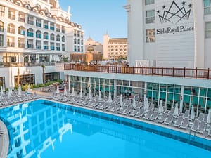 Voel je thuis in het 5-sterrenhotel Royal Palace in Side, een all-inclusive paradijs voor een zorgeloze vakantie. Geniet van zonovergoten uren op het terras, afgewisseld met een...