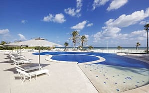 Speciaal zwembad voor kleine kids Zwembad Kinderzwembad Zandstrand Panorama terras Wellness Fitnessstudio Babysitservice Massage Jacuzzi Restaurants