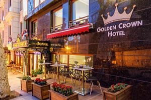 LiggingGolden Crown Hotel ligt in de sfeervolle wijk Sultanahmet in het hart van Istanbul. Rondom het hotel vind je talloze restaurants, cafés en winkeltjes. HotelfaciliteitenTot...