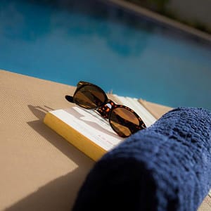 Ik zit op het terras van mijn vakantiehuis in de Bouriani en zie hoe de hemel oranje kleurt. De zon gaat langzaam onder en ik schenk nog een glas rode wijn in. Dit is leven als...